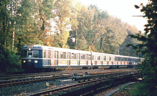 Die Einheit 471 174 + 871 074 + 471 474 war seit Januar 1955 bei der Deutschen Bundesbahn im Einsatz. Sie erreichte am 14.10.1986 gerade zusammen mit der Einheit 471 477 + 871 077 + 471 177 nach einer Fahrt quer durch Hamburg auf der Linie S 1 den Endbahnhof Poppenbüttel.