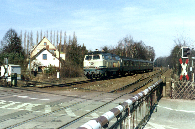 218 329 war am 24.02.1991 im S-Bahn-Verkehr der Linie S 4 zwischen Ahrensburg und Hamburg Hbf eingesetzt.